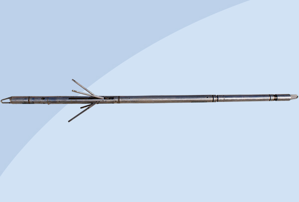 液壓推靠器配接能譜密度與微球復(fù)合探頭,使其貼靠井壁以滿足測…